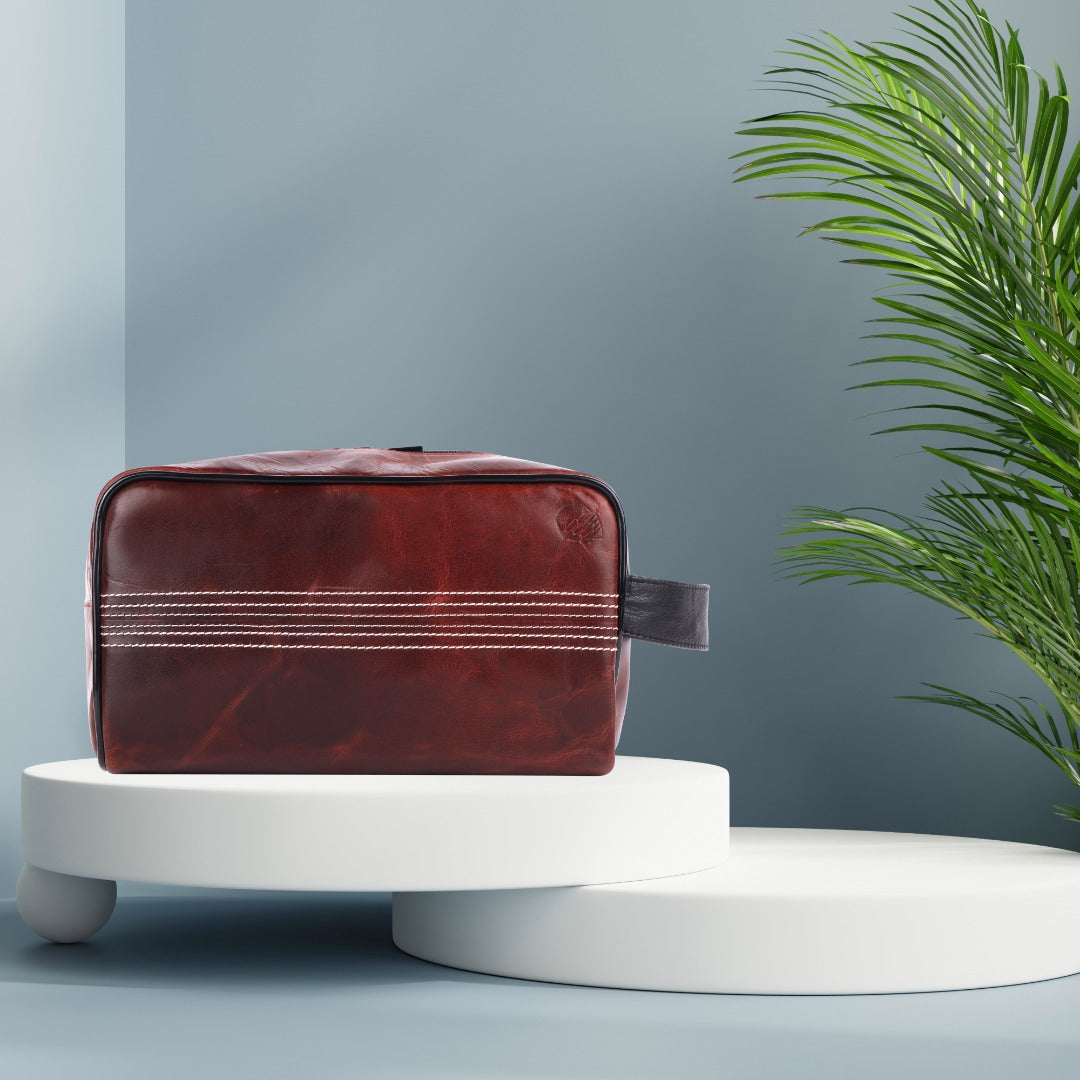 CRICKET-GIFTS Buffalo Leather Cricket Wash Bag Durable Toiletry Bag for Cricket Players