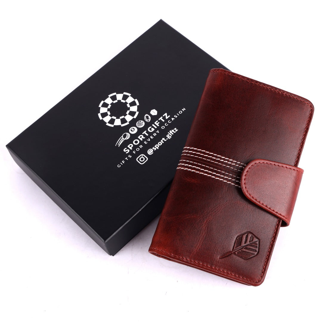CRICKET-GIFTS The Ultimate Buffalo Leather Darts Wallet - Red with white stitching