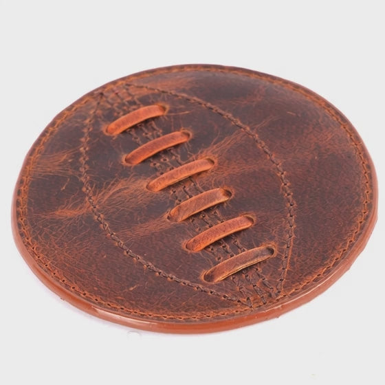 SPORTGIFTZ - Buffalo Leather Coaster | Rugby Ball Stitching | Durable and Elegant Design