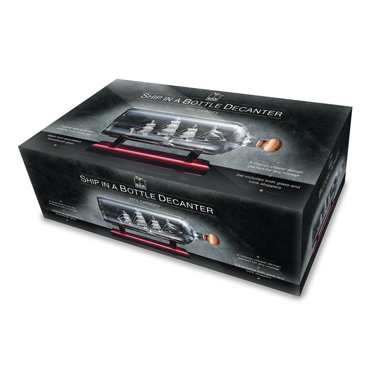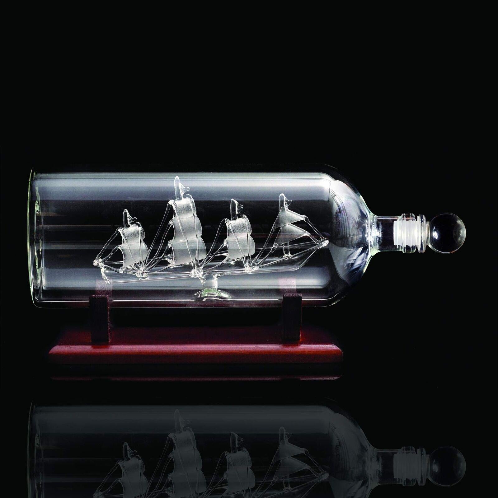 The Ship in a Bottle Decanter: Yo ho ho and a bottle of rum, whisky, vodka, or whatever else splices your mainbrace. The classic ship in a bottle conundrum is given an update with this handmade borosilicate glass decanter version to display your favourite tipple. The decanter holds a full 75cl bottle and comes complete with cork stopper for authenticity and a wood display stand. Hand wash after use and seal tightly with the stopper after filling. Supplied with a Cork Stopper (Decorative) and Glass Stopper for liquid.